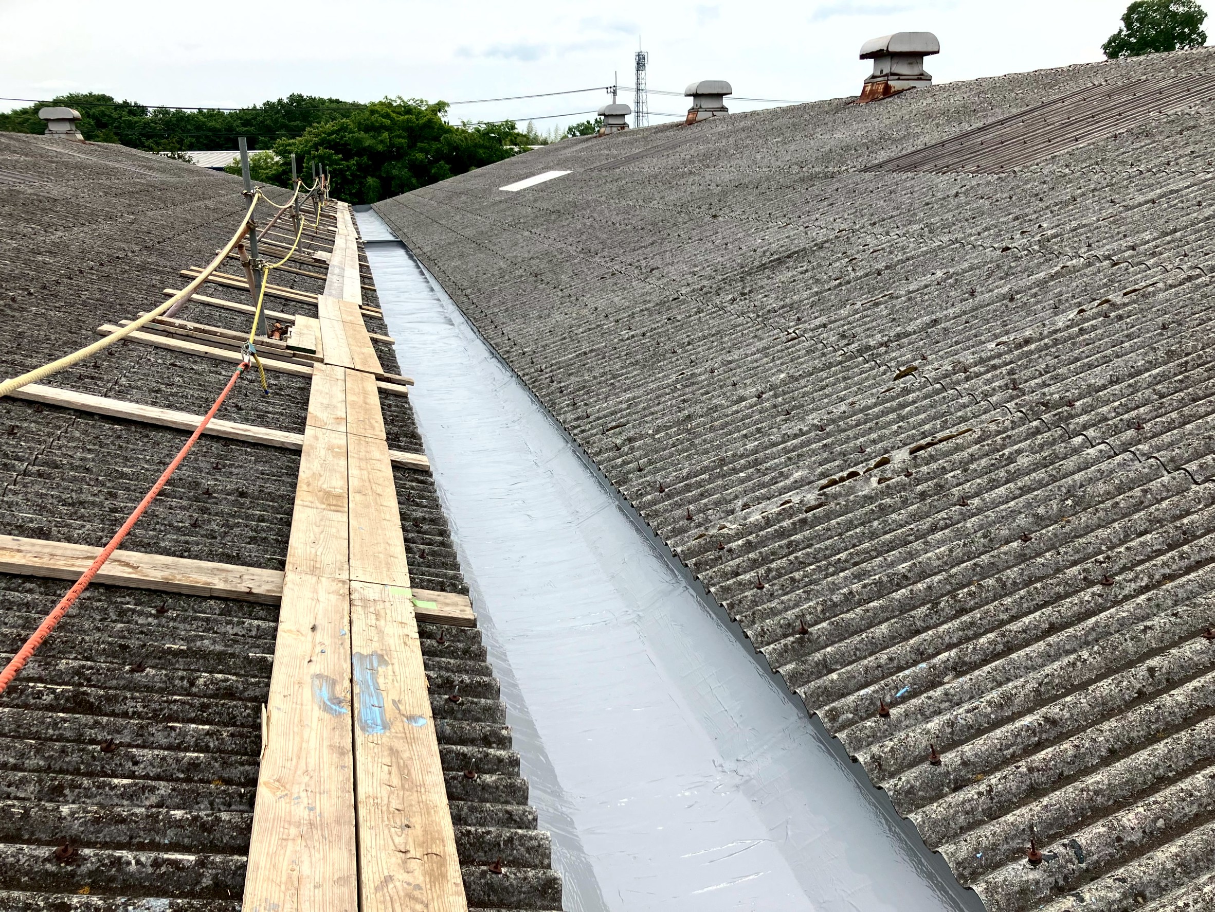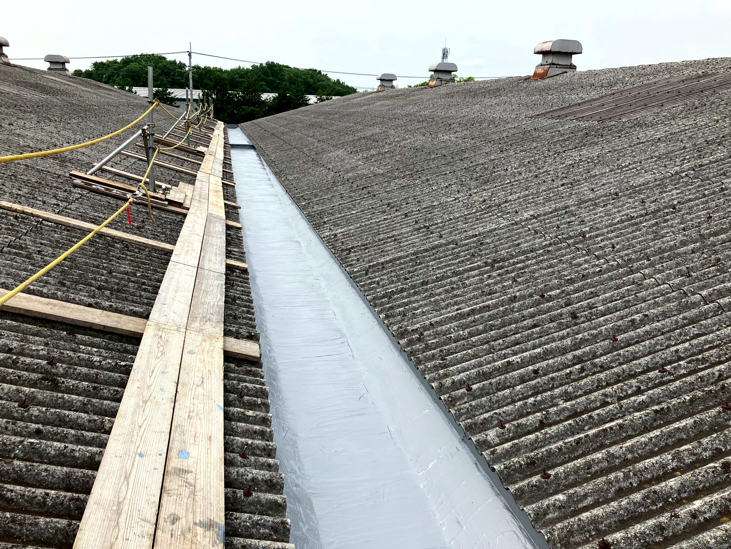 詳細説明:板金補修とウレタンウレタン防水材塗布を行ないました。